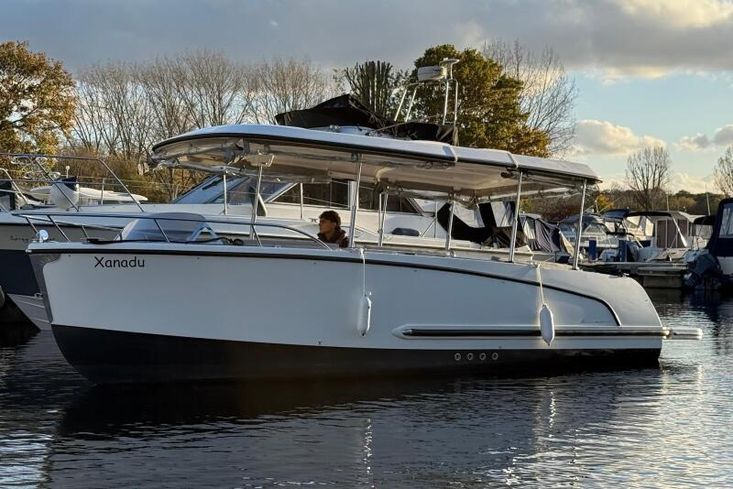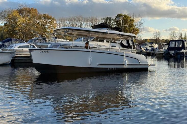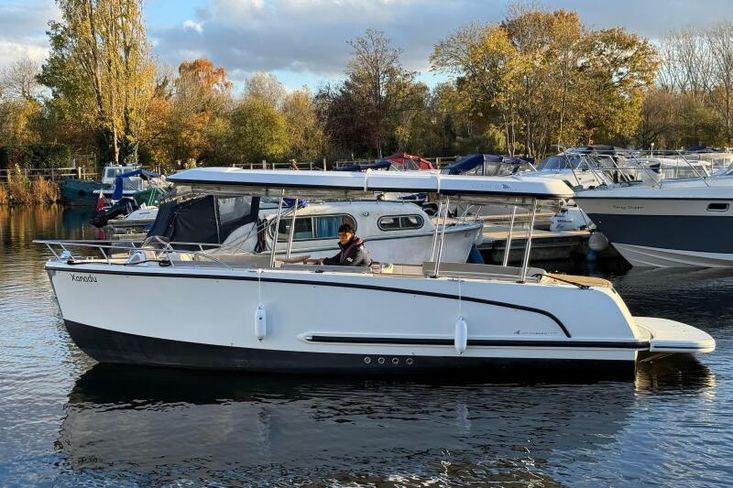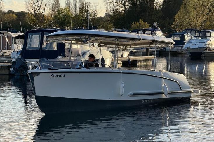 Introducing the Alfastreet 23, a 2015 river cruiser that perfectly blends elegance and functionality. Powered by a 2024 Epropulsion electric 6kw pod drive engine, 'Xanadu' offers beautifully quiet, serene cruising. The Alfastreet 23 is designed for comfort and ease of use, equipped with the hydraulic hard top roof with remote control. Whether you're enjoying a day on the water or exploring scenic routes, this river cruiser offers a delightful experience for all who step aboard.Engine & Service Information 2024 Epropultion Lithium 6kw Electric Pod Drive Engine Antifoul 2024 Valid Boat Safety Certificate until 05/2029Construction & Mechanical LOA: 23ft + Bathing Platform Beam: 7ft 11 in Max Draft: 1ft 7 in 12v Lighting Shore Line Battery Charger Fire Extinguisher Bilge PumpEquipment Electric Horn Anchor Storage Spacious cockpit seating CE Certificate: C Carry up to 10 passengers Cockpit Ambient LED Lighting Hydraulic Hard Top Roof with remote control Navigation Lights