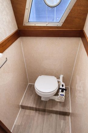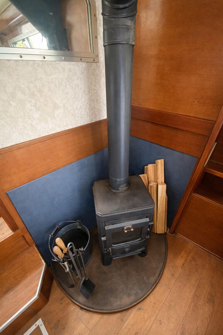 Despite her manageable size, Athos offers an impressive amount of living space, with accommodation that flows well and provides comfortable living whether used as a permanent residence or a weekend retreat. She also retains the ability to cruise the UK’s inland waterways if desired.
