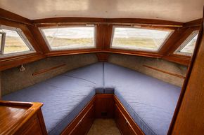 Athos offers seven berths, making her ideal for family use or guests. The spacious lounge features fitted seating and benefits from plenty of windows throughout, creating a bright and airy feel.