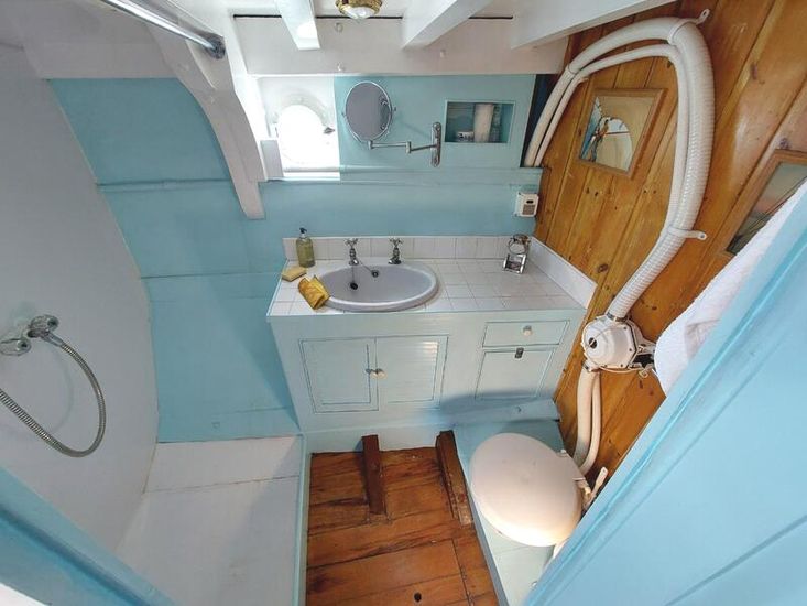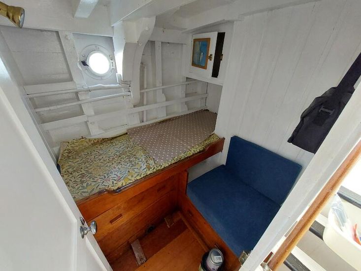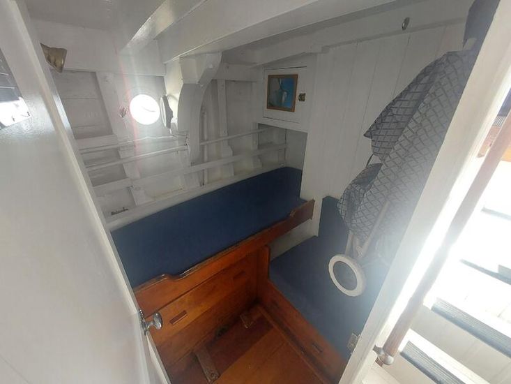 SINGLE CABIN - to port side with good sized pilot berth and ample lockers and hanging. The floor lifts to give access to the propeller shaft. Mains electric socket located behind door.