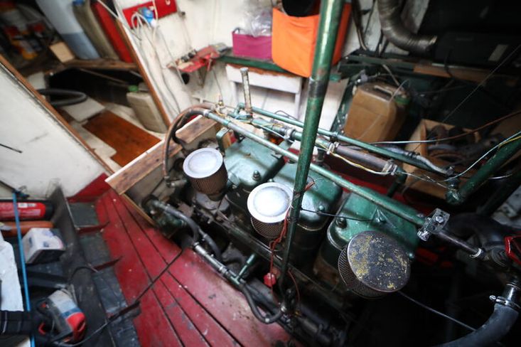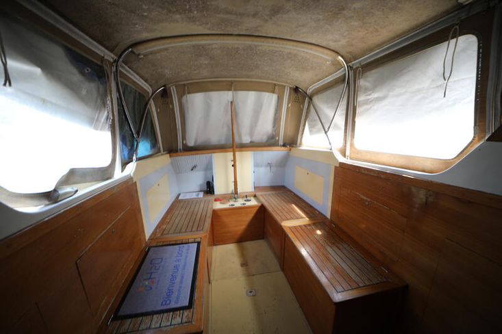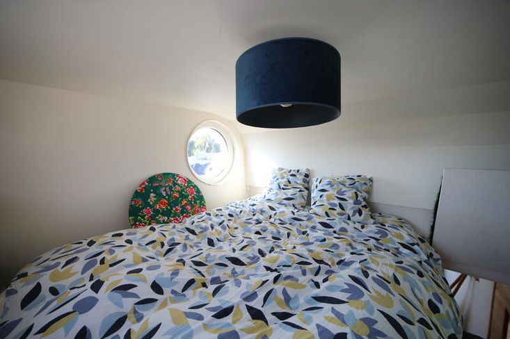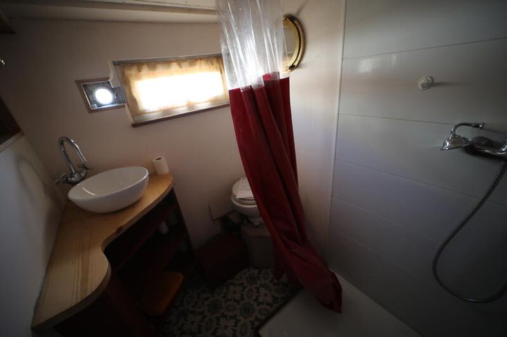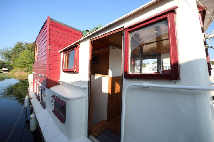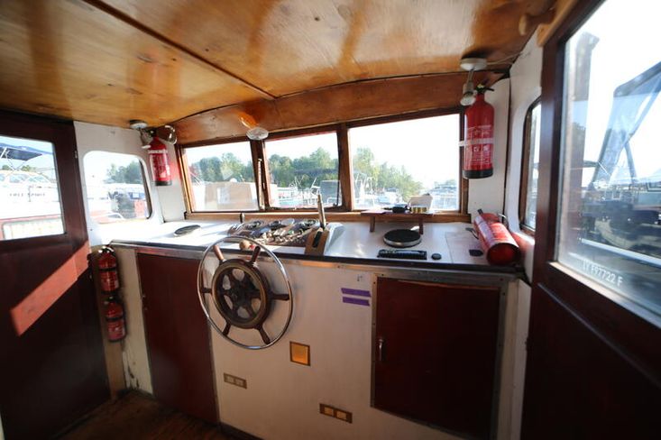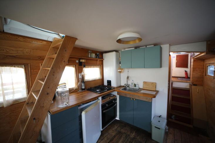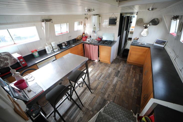 This boat, built in 1930, is a real floating home. The interior is bright and uncluttered.