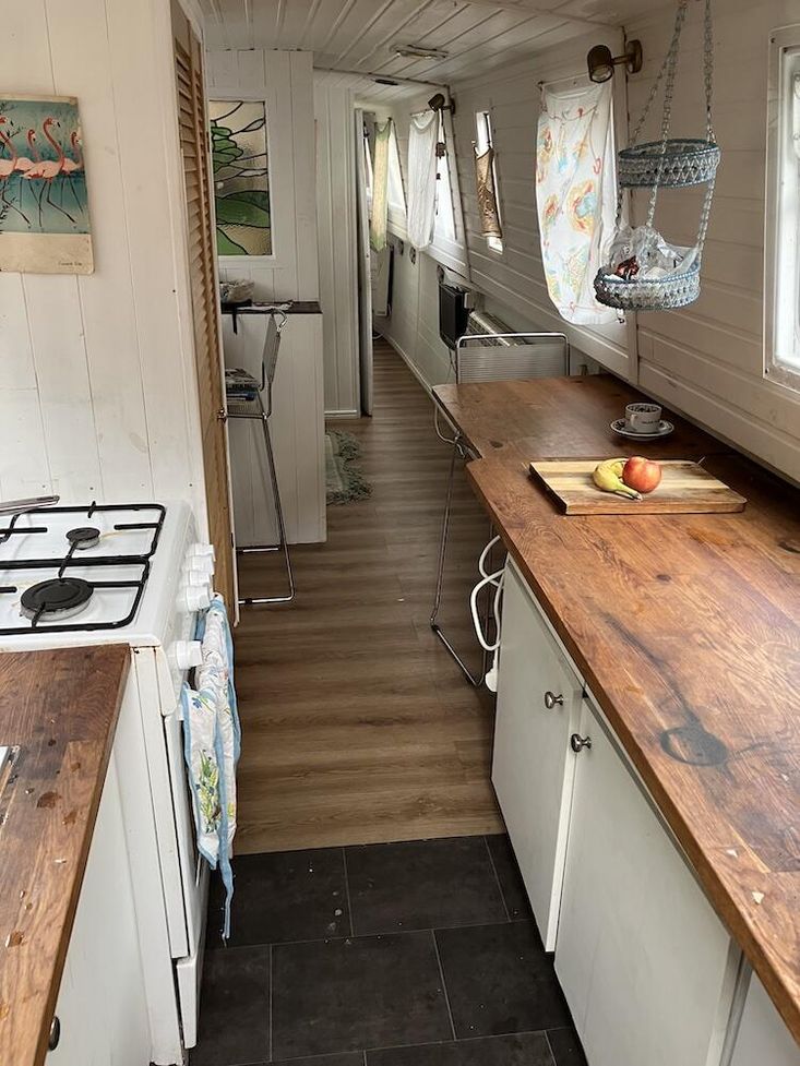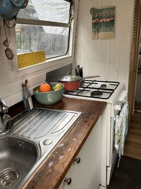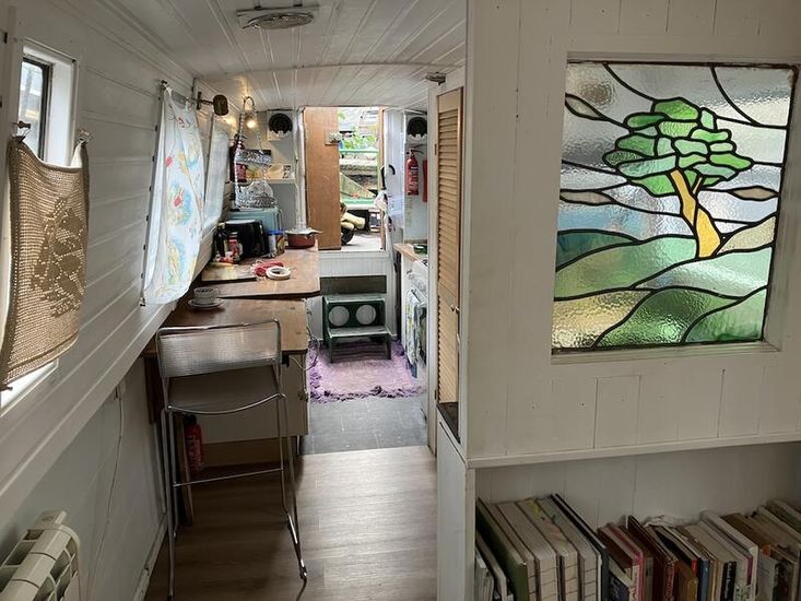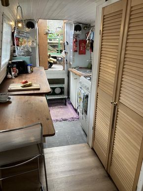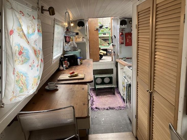 narrowboat for sale with residential mooring in Wenlock Basin near Angel. one double bedroom, bathroom, saloon & galley. secure gated access mooring. Built 1986, BSC 2025