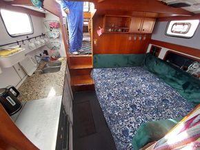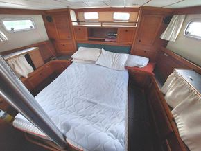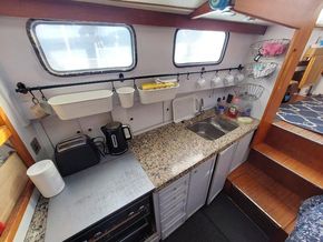 Double berth in owner’s aft cabin, dinette converts to double berth, double berth in the forepeak, 3 cabins, 6’ 4” headroom, chart table, hangine lockers, diesel heating, 2 bathrooms with sea toilets, wash basins & showers, gas cooker, galley sink, hot water system, 1,000 litre water capacity.