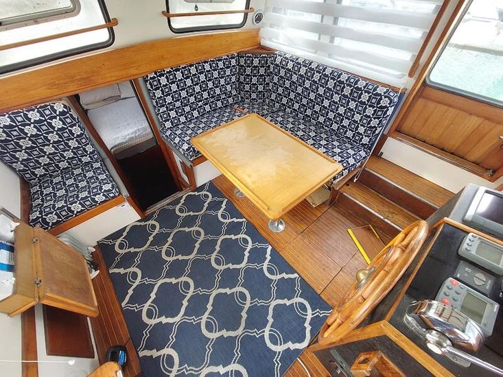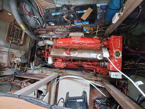 Ford D-Series, 120hp, 6 cylinder diesel. Serial number: D38664029. Engine hours: 2,509. Drive type: shaft. Maximum speed under power: 9kts. Fuel capacity: 900 litres. 4 batteries charged from the engine. Shore power. Solar panels.